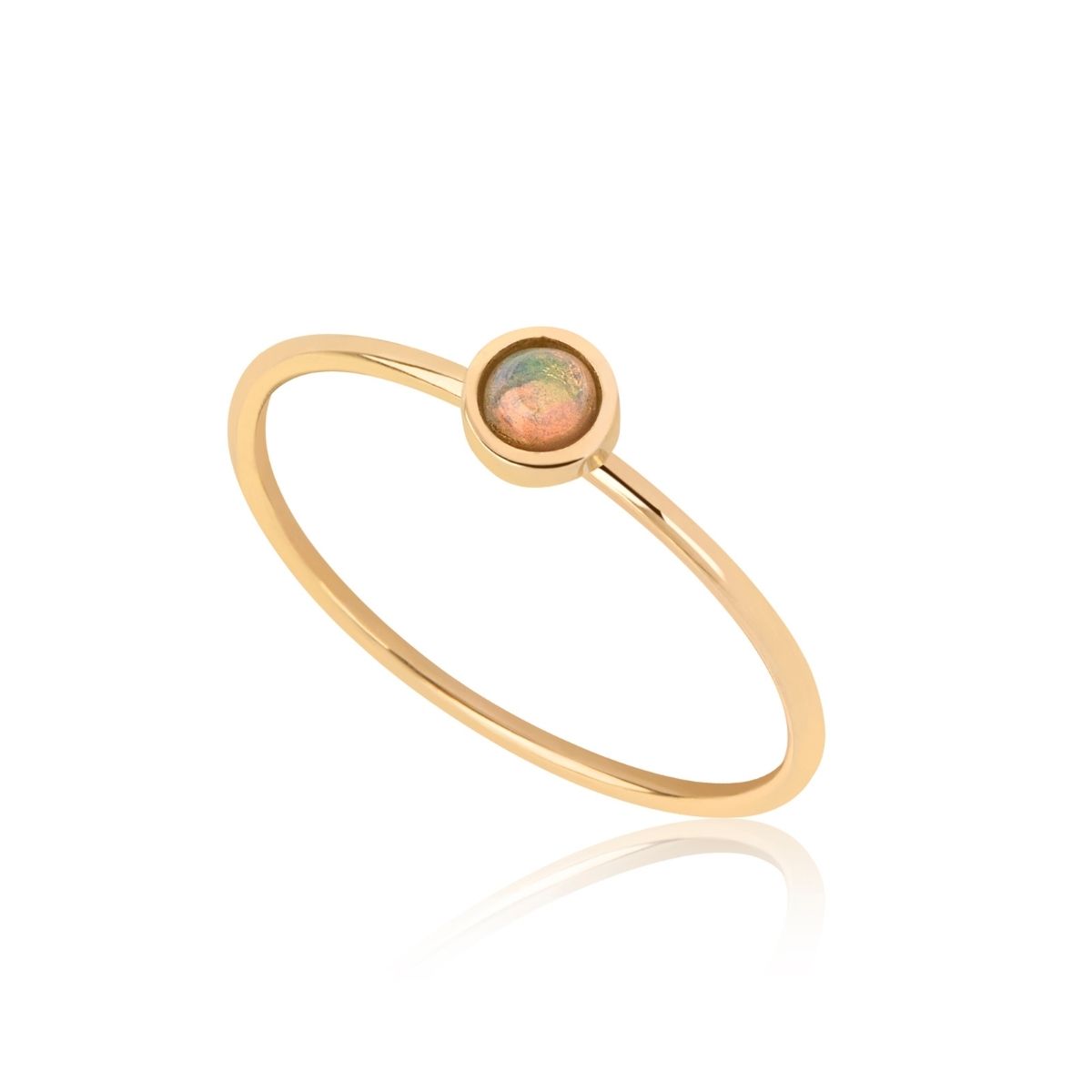 Feita à mão, cada peça é única em cor e brilho, refletindo a beleza orgânica da natureza em contraste com a pureza do ouro. Com aro fino e acabamento polido, é uma joia discreta e sofisticada, ideal para o uso diário ou para compor combinações atemporais.
